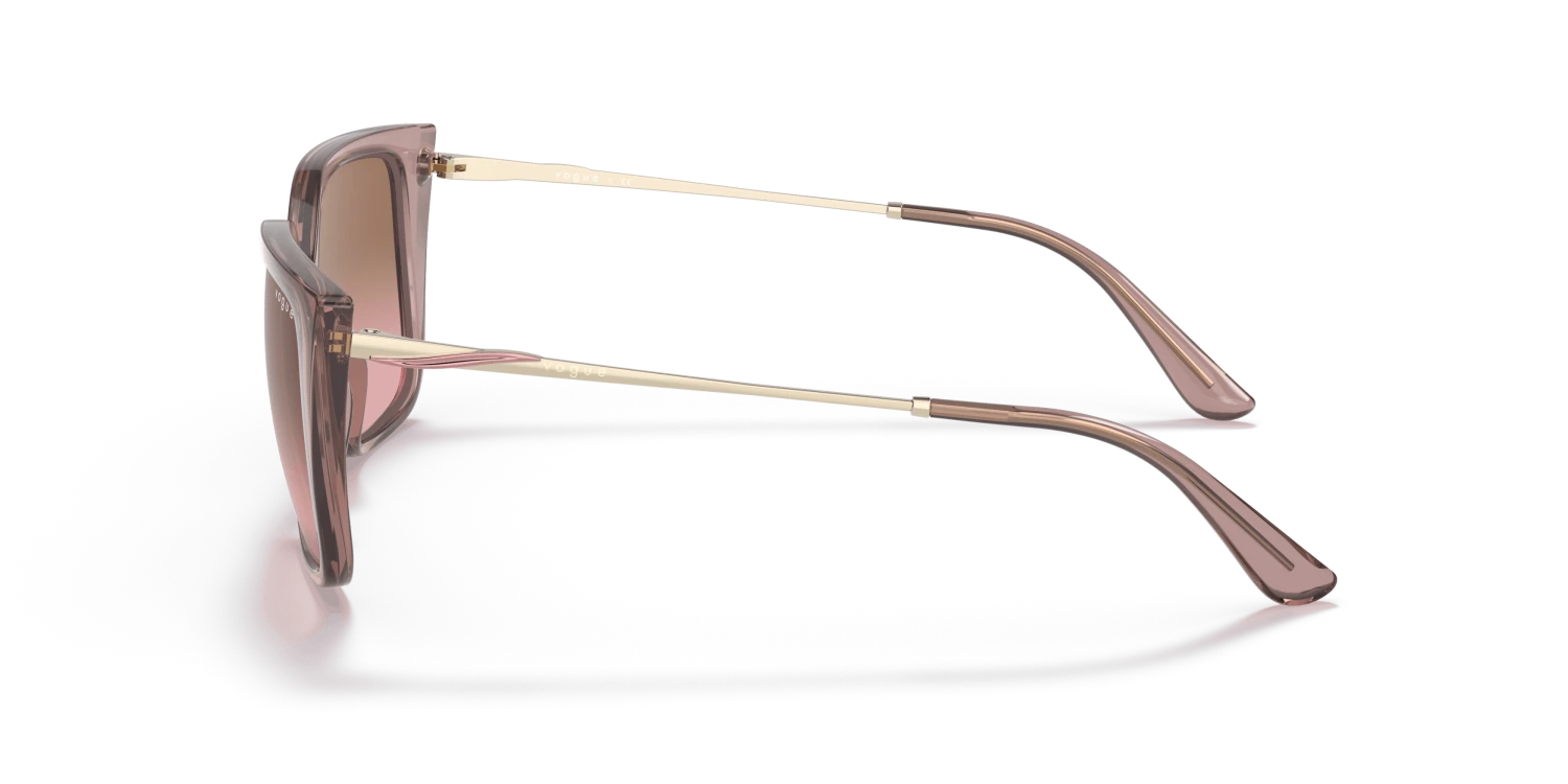 Nieuwe zonnebril nodig? Zoek niet verder! De Vogue 0VO5386S 285714 is namelijk onmisbaar in jouw collectie. Dit prachtige dames model is transparant en is gemaakt van kunststof. De bruine zonnebrilglazen zorgen voor een verhoogd contrast en blokkeren blauw licht. De Vogue 0VO5386S 285714 heeft een rechthoekig montuur. Dit past goed bij een ovale of ronde gezichtsvorm. Dit montuur valt klein.